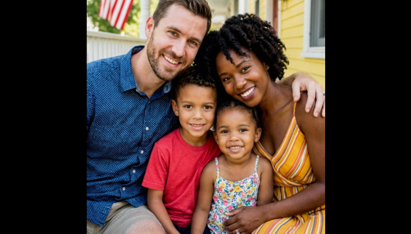 Uma família de três pessoas comemorando | Fonte: Midjourney