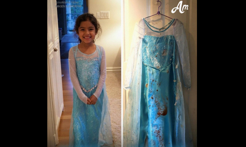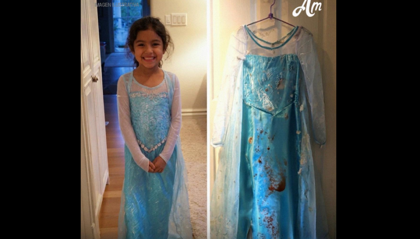On the ground, Elsa's dress lay like a wounded bird. Torn in half. The snowflakes were broken in half. The cape was shredded at the edge, and someone had smeared what looked like wine across the front in streaks of a furious red.